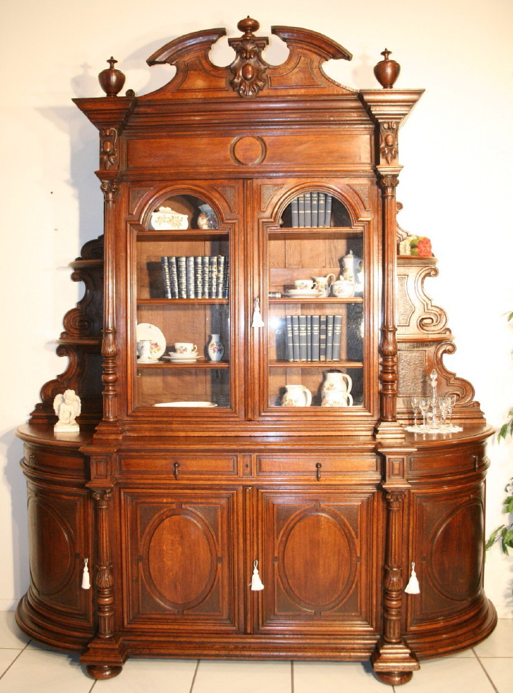 Herrschaftliches Büffet in edlem Eichenholz um 1870 Herrschaftliches Büffet in edlem Eichenholz um 1870 Breite 1,50 m Tiefe 61 cm Höhe 2,56 m 1200.00 € |