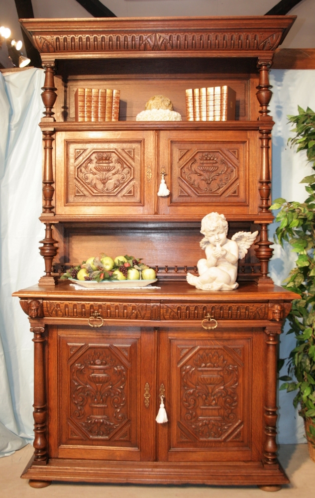 Elegante Kredenz Büffet Deux Corps in Eiche um 1870 Elegante Kredenz Büffet Deux Corps, reich geschnitzt in Eiche um 1870. Breite 1,40 m Tiefe 60 cm Höhe 2,42 m Gerne mailen wir Ihnen Detailbilder zu. 1200.00 € |