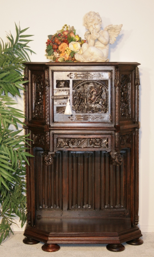 Herrschaftliches Kleinmöbel in Eiche um 1860, reich geschnitzt