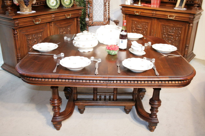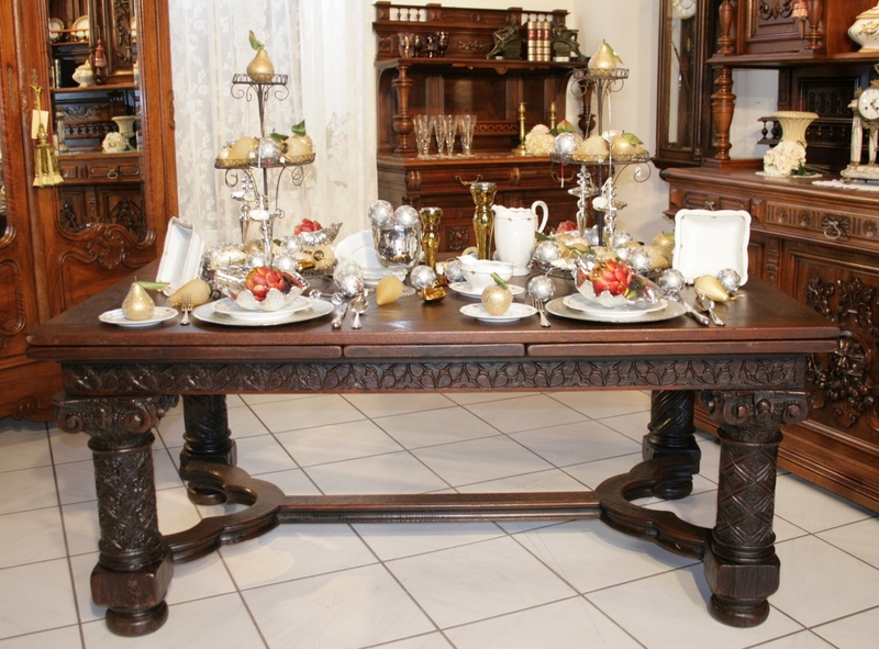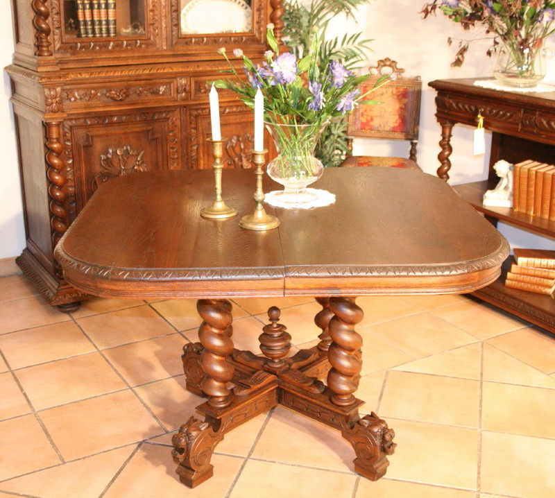 Reich verzierter Speisetisch in Eiche um 1870 Reich verzierter Speisetisch für 12 Personen, in Eiche um 1870.