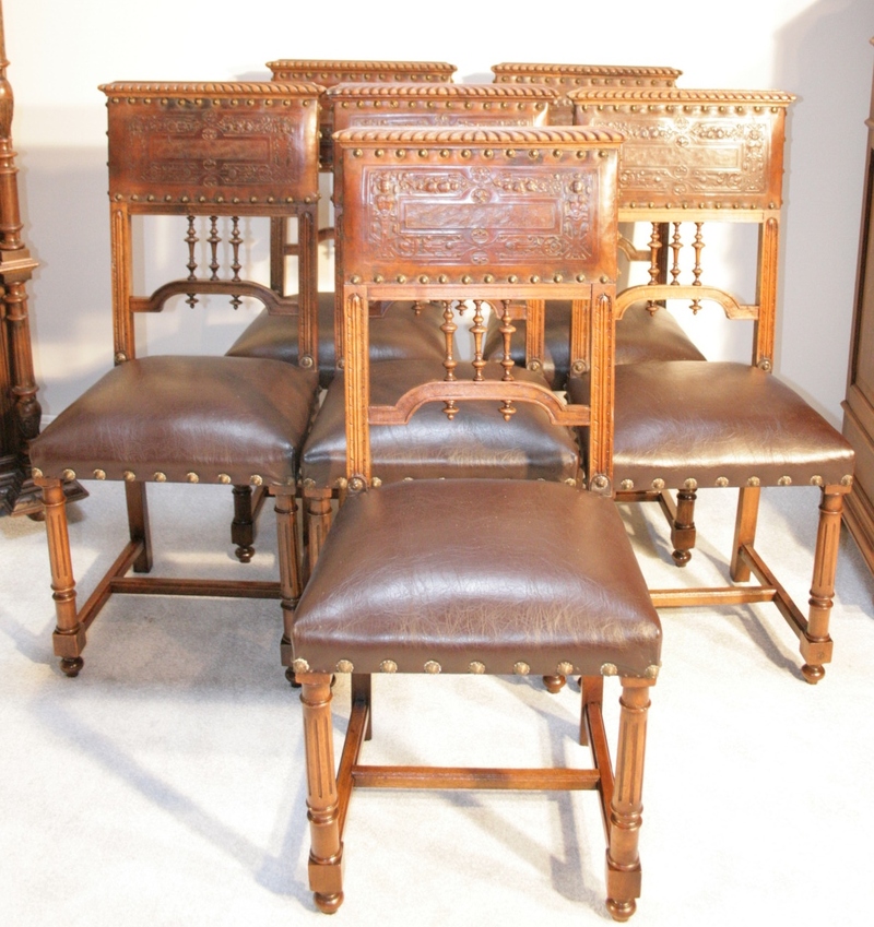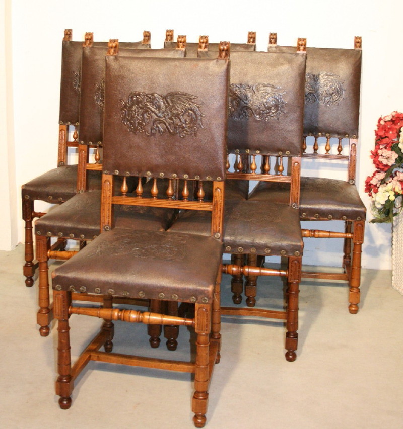 8 Stühle mit original Prägeleder in Nussbaum um 1880 8 Stühle mit original Prägeleder in Nussbaum um 1880 Breite 42 cm Tiefe 40 cm Höhe 98 cm Sitzhöhe 45 cm 0.00 € |