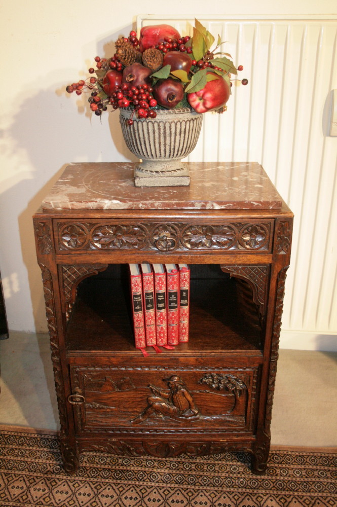 Wunderschönes Beistellmöbel in Nussbaum um 1880 Wunderschönes Beistellmöbel in Nussbaum um 1880 Breite 48 cm Tiefe 40 cm Höhe 1,00 m 0.00 € |