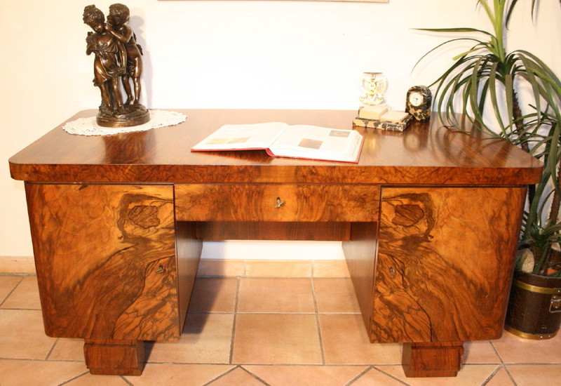 Wunderschöner Schreibtisch in Wurzelholz um 1920 Wunderschöner Schreibtisch in Wurzelholz um 1920 Breite 1,60 m Tiefe 78 cm höhe 78 cm Gerne mailen wir Ihnen Detailbilder zu. 0.00 € |