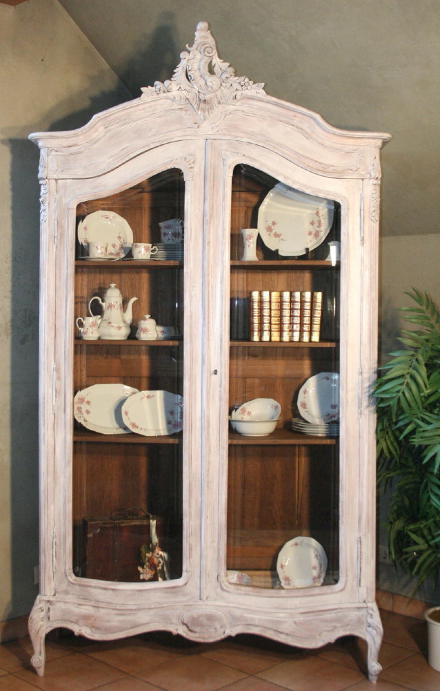 Elegante Vitrine im Shabby Elegante Vitrine im Shabby Look um 1880 aus Frankreich Das Holz ist Nussbaum und wurde von uns im Shabby Look aufgearbeitet Breite 1,40 m Tiefe 43 cm Höhe 2,45 m 0.00 € |
