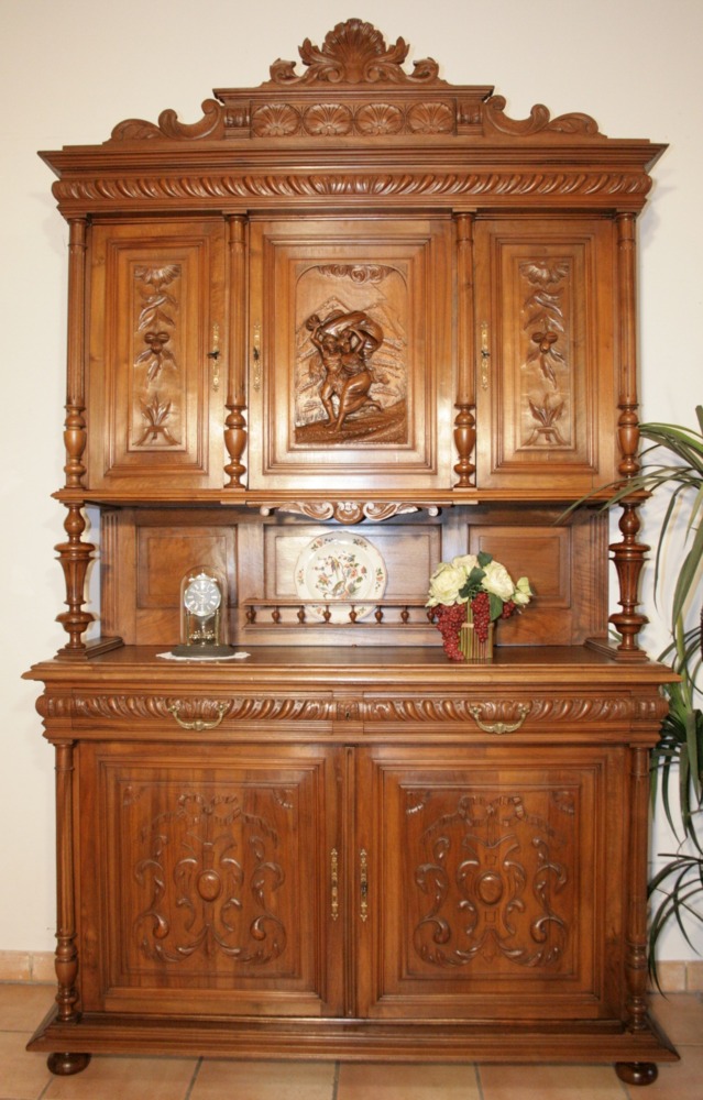 Wunderschönes Büffet in Nussbaum um 1880 Wunderschönes Büffet reich geschnitzt in Nussbaum um 1880 Breite 1,55 m Tiefe 55 cm Höhe 2,45 m 0.00 € |