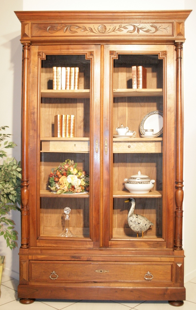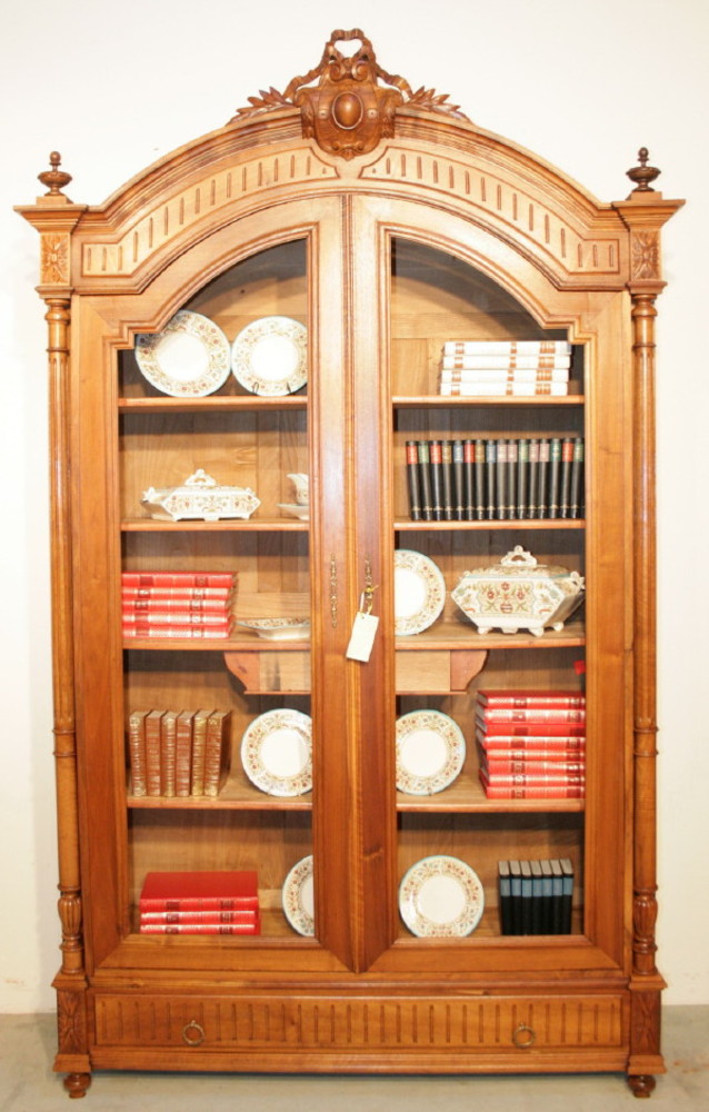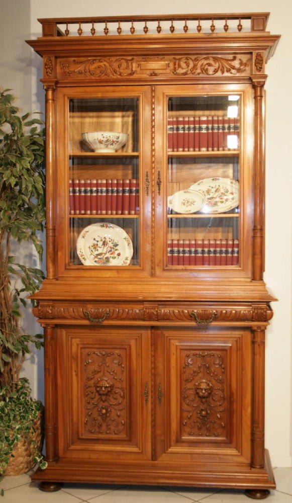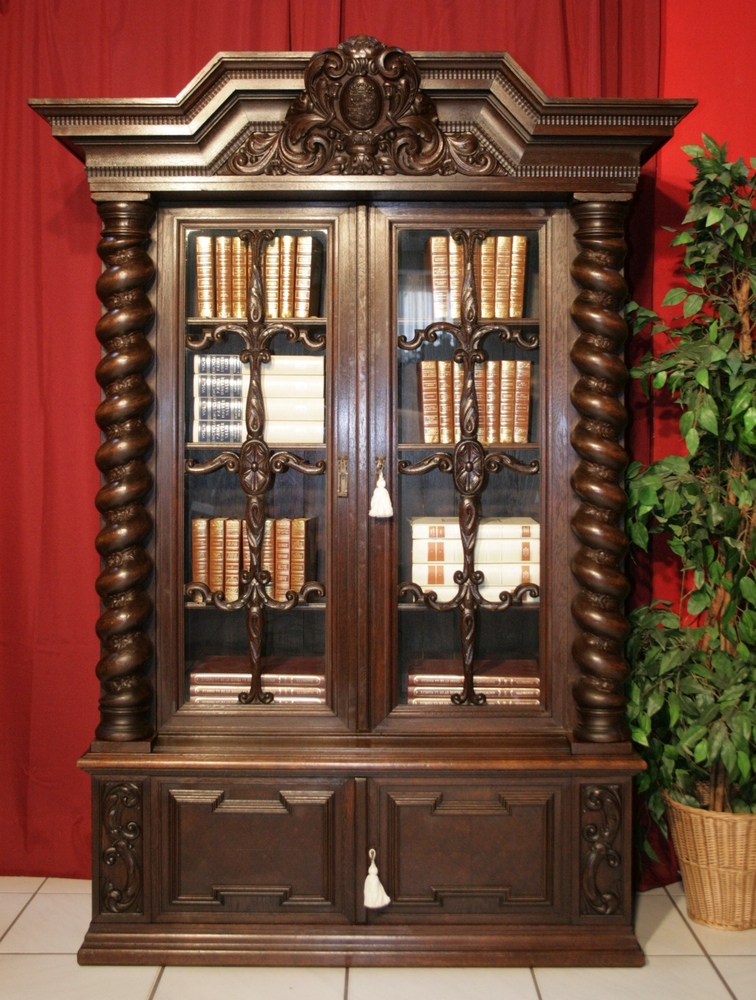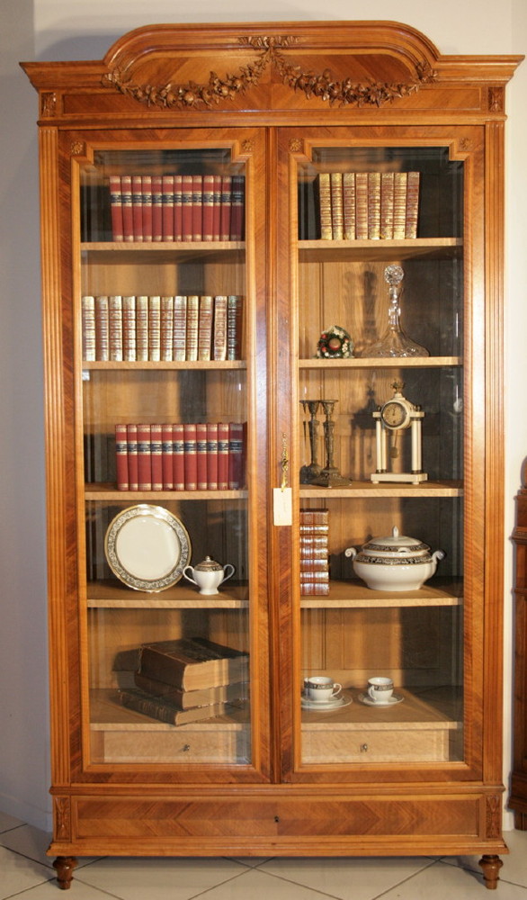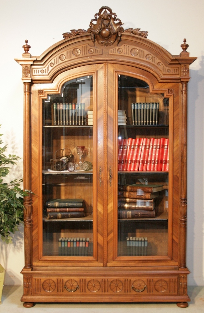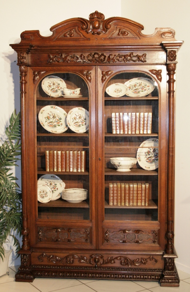 Herrschaftlicher Bücherschrank in Nussbaum um 1870 Herrschaftlicher Bücherschrank in Nussbaum um 1870