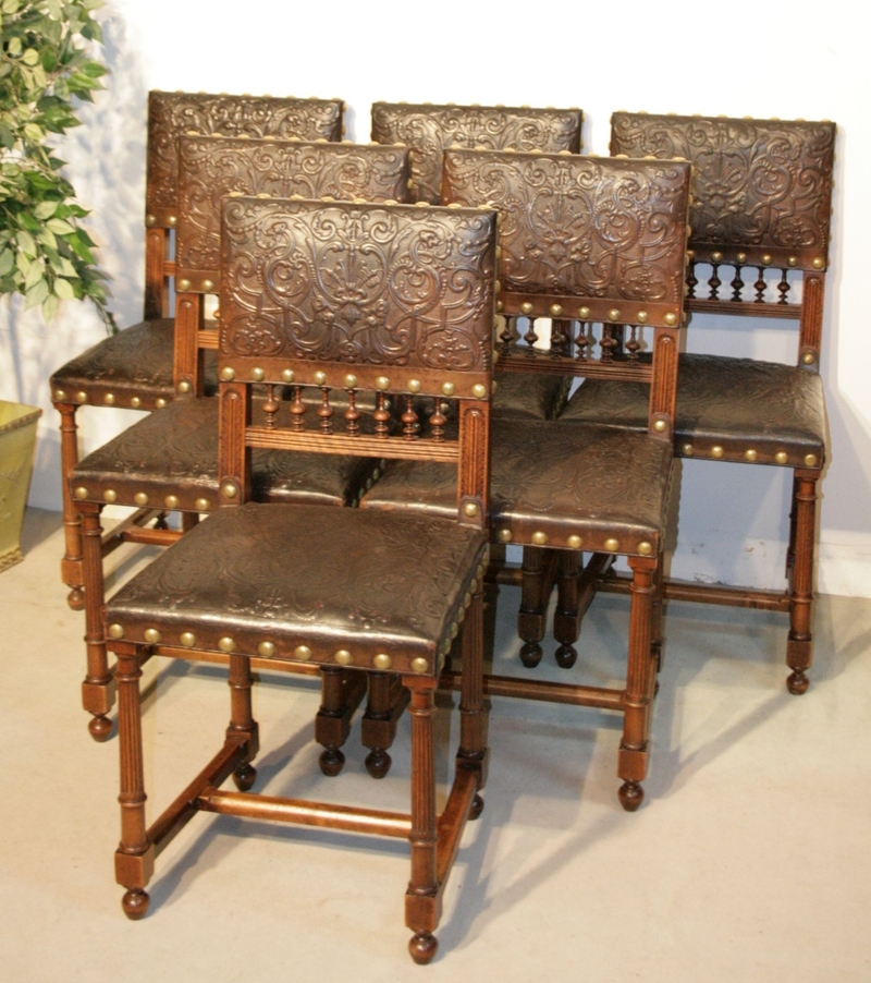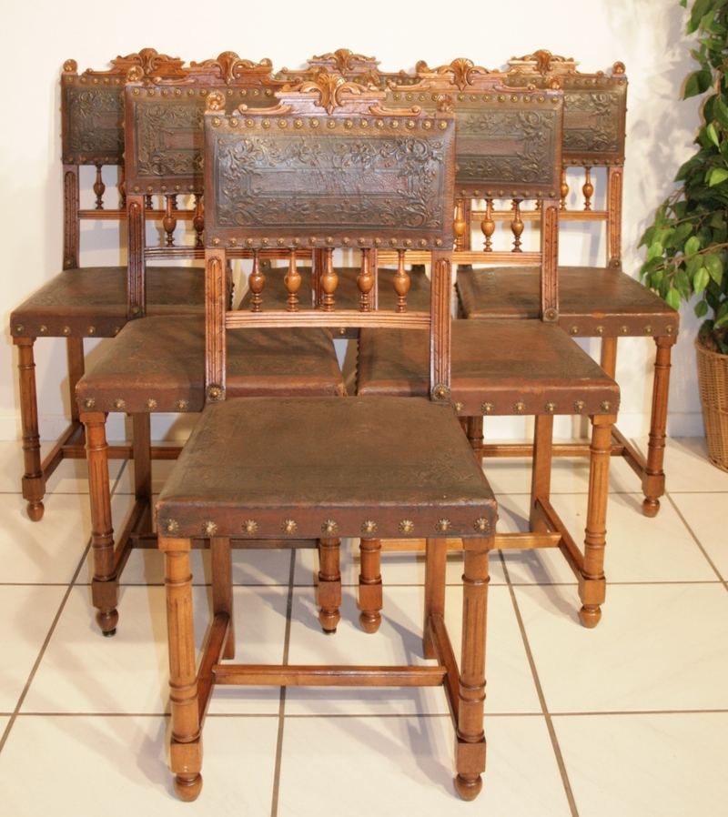 6 Elegante Stühle mit Prägeleder um 1880 6 Elegante Stühle mit Prägeleder um 1880 Breite 42 cm Tiefe 39 cm Höhe 93 cm Sitzhöhe 46 cm 0.00 € |