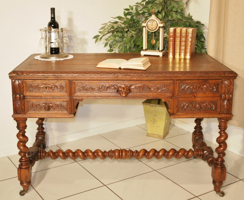 Herrschaftlicher Schreibtisch in Eiche um 1870 Herrschaftlicher Schreibtisch in Eiche um 1870 Breite 1,27 m Tiefe 67 cm Höhe 78 cm 0.00 € |
