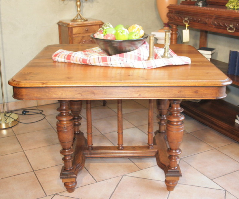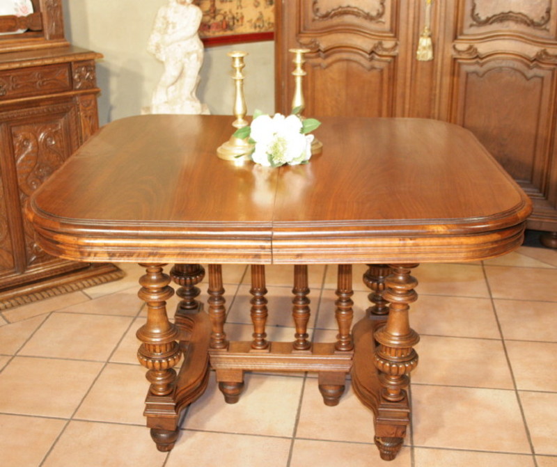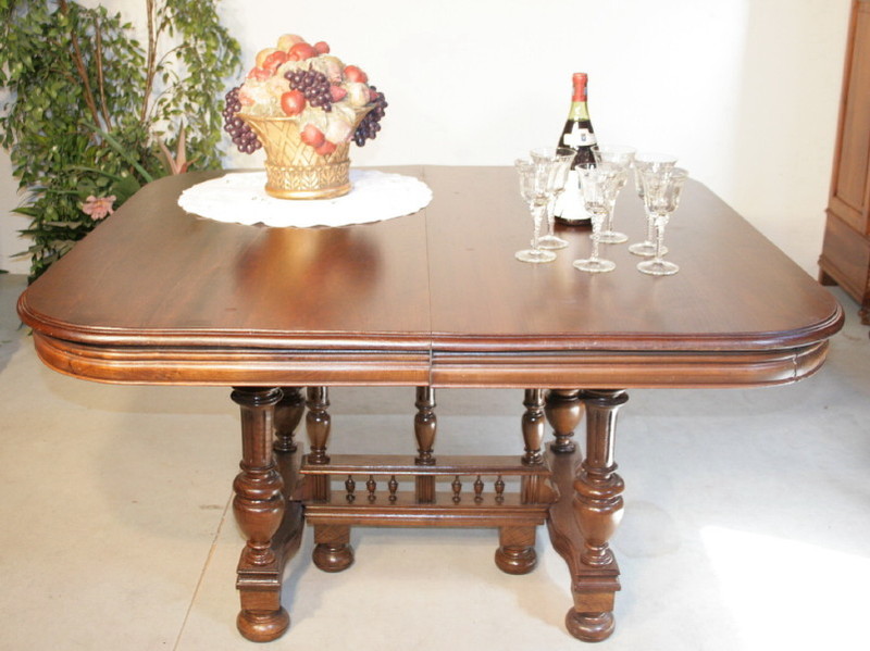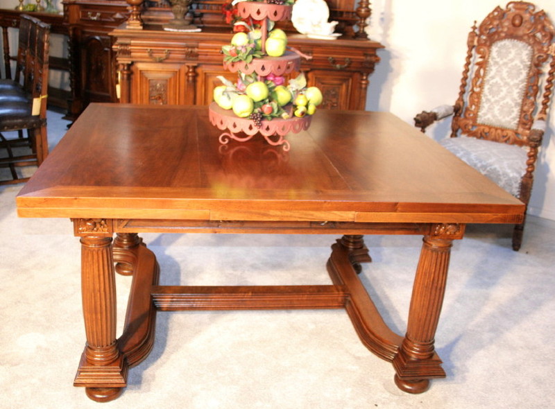 Wunderschöner Speisetisch für 12 Personen in Eiche Wunderschöner Speisetisch für 12 Personen in Eiche um 1880, mit 3 zusätzlichen Einlegeplatten. Breite 1,05 m Länge 1,14 m ausgezogen 2,17 m 0.00 € |