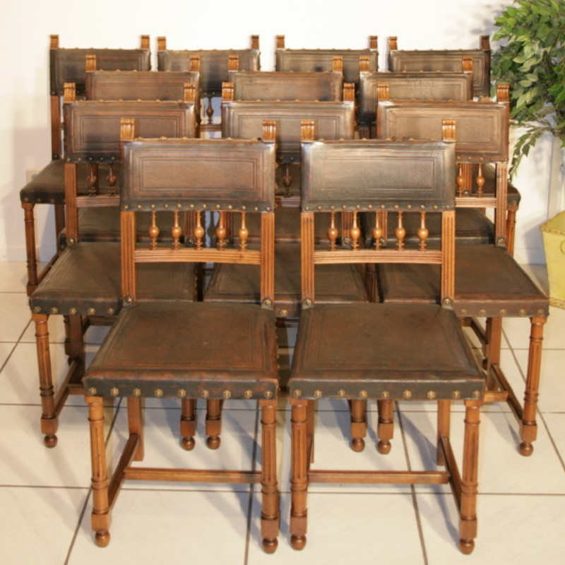 12 Stühle mit Prägeleder in Nussbaum um 1880 12 Stühle mit original Prägeleder in Nussbaum um 1880 Breite 43 cm Tiefe 40 cm Höhe 91 cm Sitzhöhe 47 cm 0.00 € |