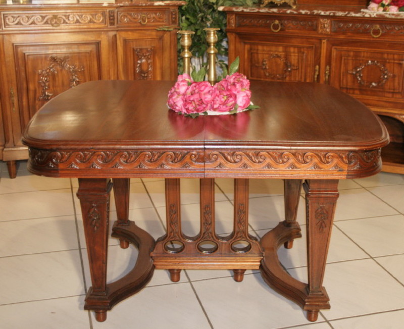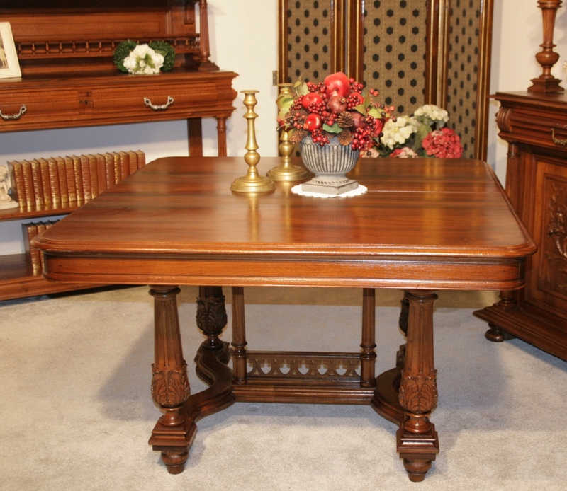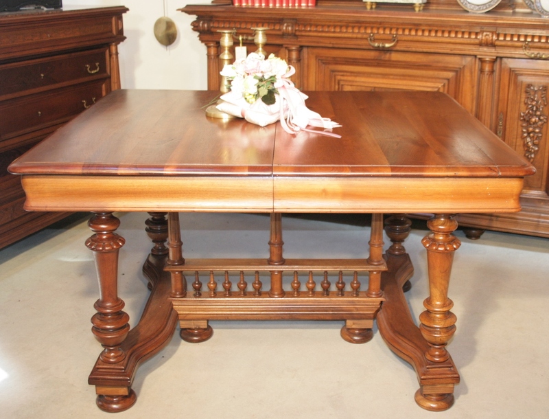Eleganter Speisetisch in Nussbaum für 14 Pers. um 1880 Eleganter Speisetisch für 14 Personen in edlem Nussbaum um 1880, mit 3 Einlegeplatten.