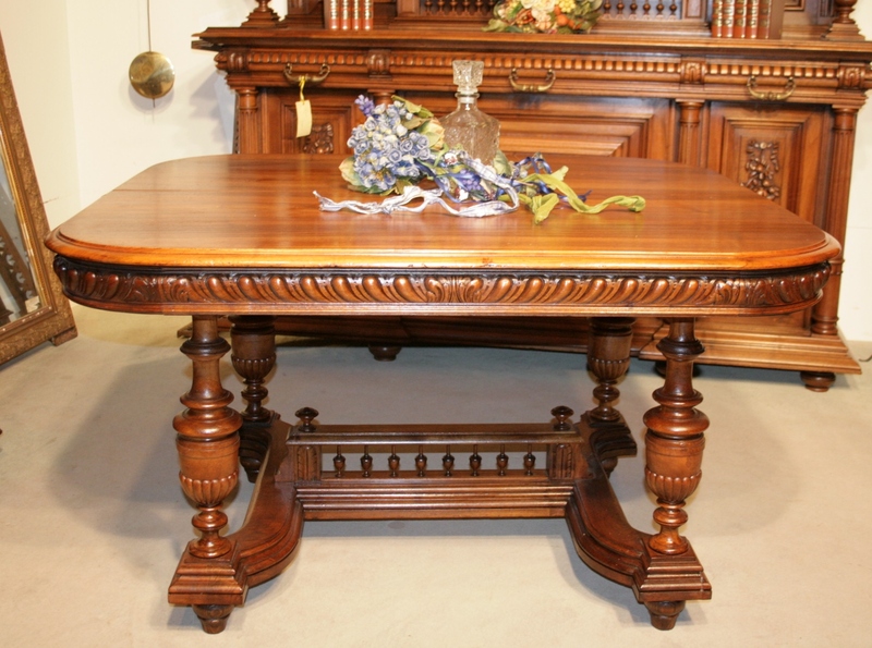 Prachtvoller Speisetisch in edlem Eichenholz um 1880 Prachtvoller Speisetisch in edlem Eichenholz um 1880 Breite 1,00 m Höhe 74 cm Länge 1,48 m ausgezogen 2,68 m 0.00 € |