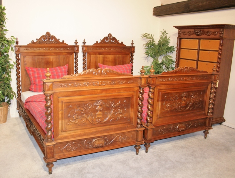 2 Prachtvolle Betten 1,00 m x 1,90 m in Nussbaum um 1870 2 Prachtvolle Betten in edlem Nussbaum um 1870, Liegefl. 1,00 m x 1,90 m Breite 1,16 m Länge 2,06 m Höhe Kopfteil 1,48 m Höhe Fußteil 1,05 m 0.00 € |