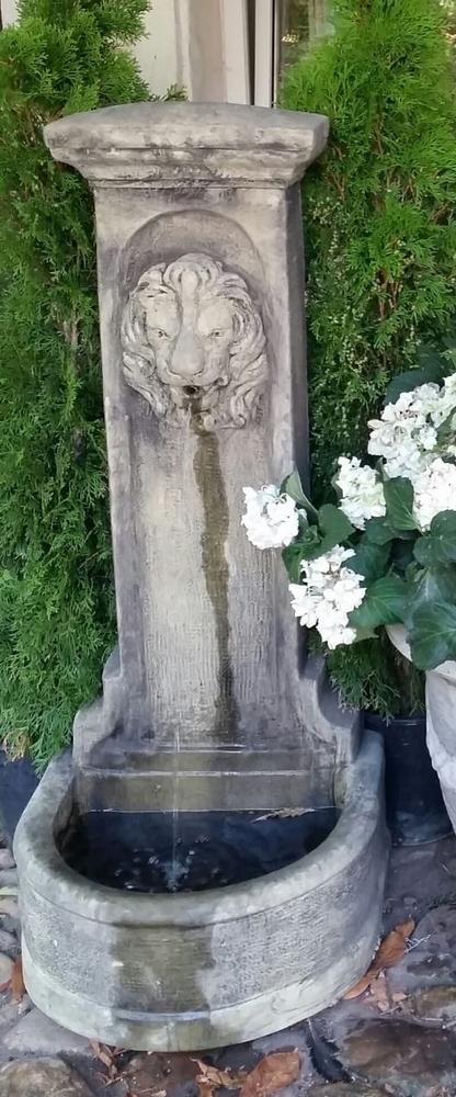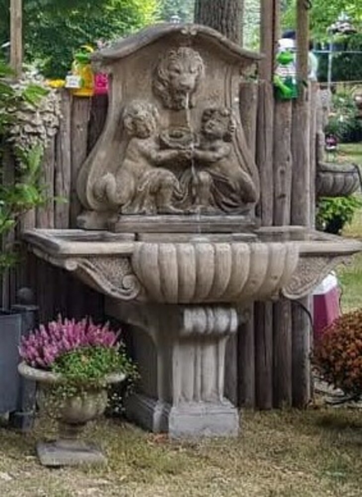 Große Fontaine mit Engel & Löwe Große Fontaine mit Engel & Löwe, der Blickpunkt für ihren Garten, historischer Gartenbrunnen nach originalem Vorbild Breite 1,20 m Tiefe 62 cm Höhe 1,60 m 0.00 € |