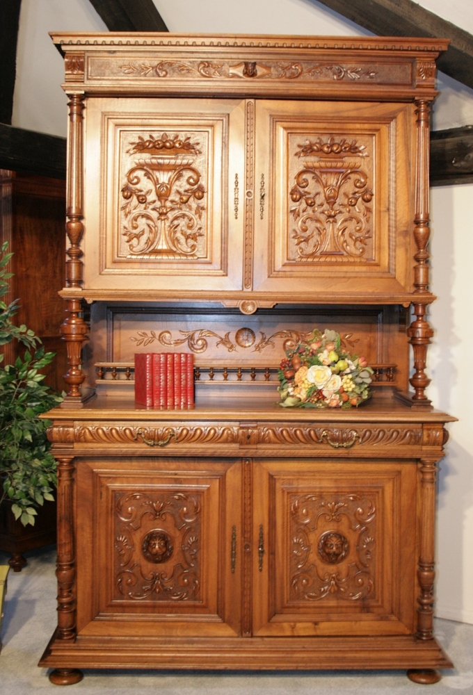 Elegante Kredenz Büffet Deux Corps in Eiche um 1870 Elegante Kredenz Büffet Deux Corps, reich geschnitzt in Eiche um 1870. Breite 1,40 m Tiefe 60 cm Höhe 2,42 m Gerne mailen wir Ihnen Detailbilder zu. 1200.00 € |