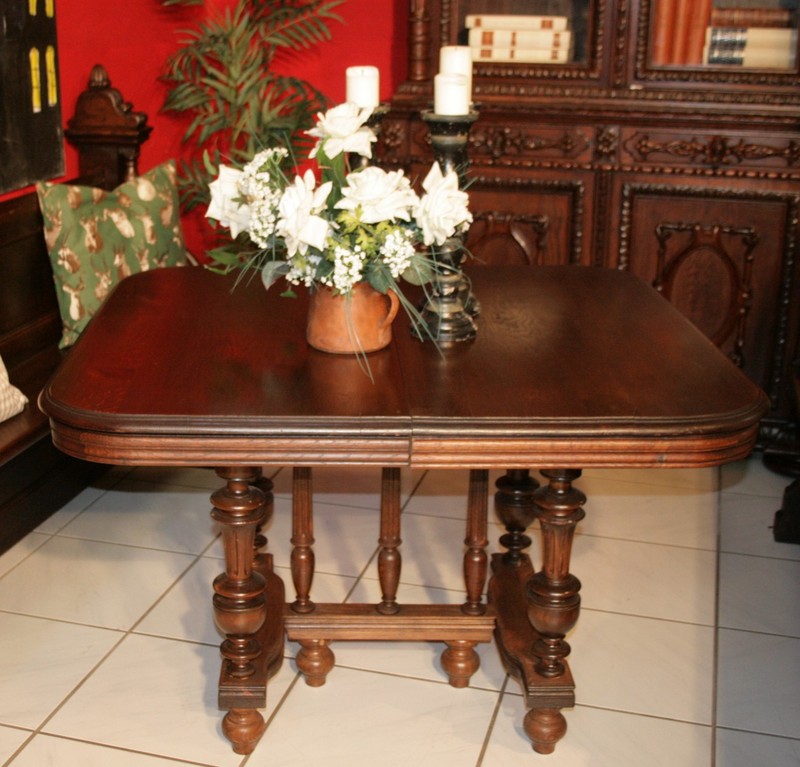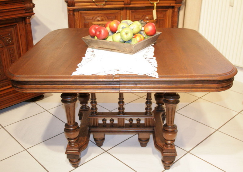 Großer wunderschöner Speisetisch in Eiche um 1880 Großer wunderschöner Speisetisch in Eiche um 1880. Breite 1,30 m Länge 2,40 m ausgezogen 4,00 m