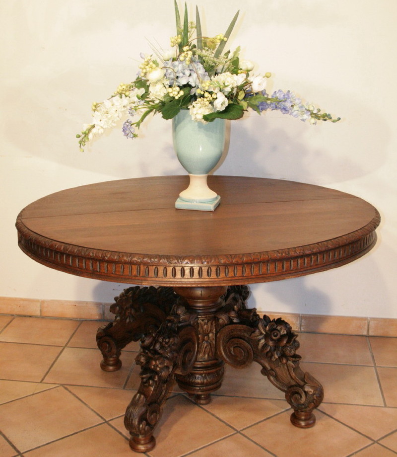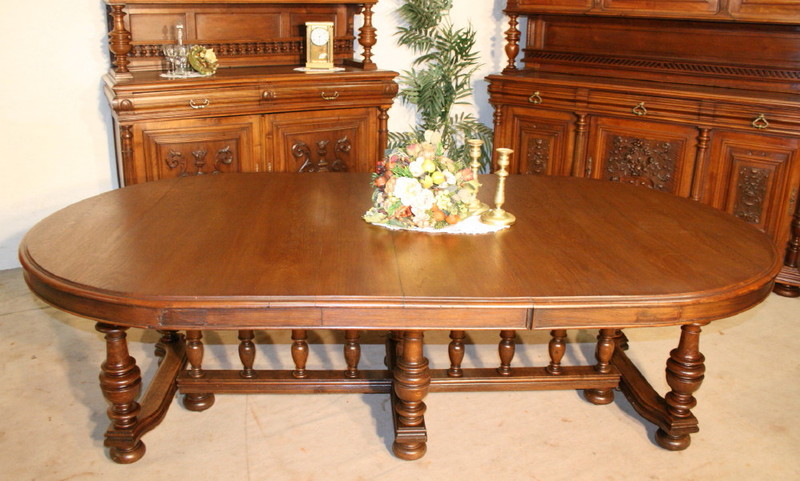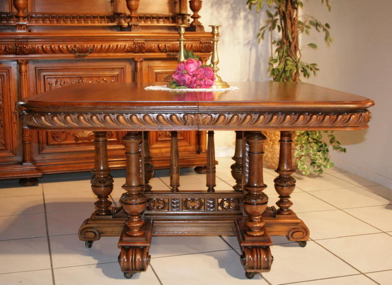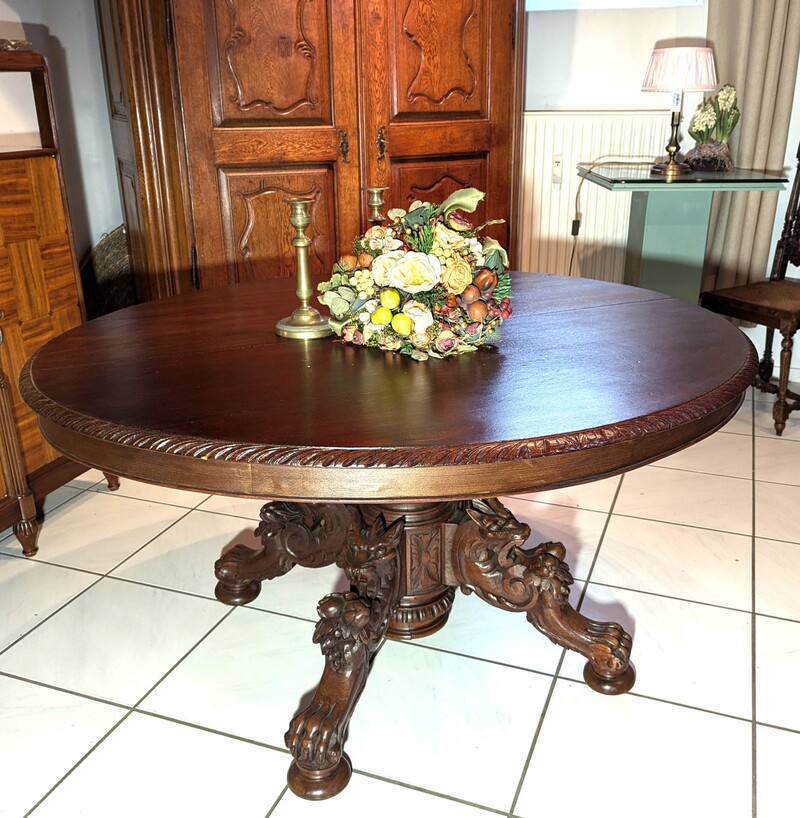 Reich verzierter Speisetisch in Eiche um 1870 Reich verzierter Speisetisch für 12 Personen, in Eiche um 1870.