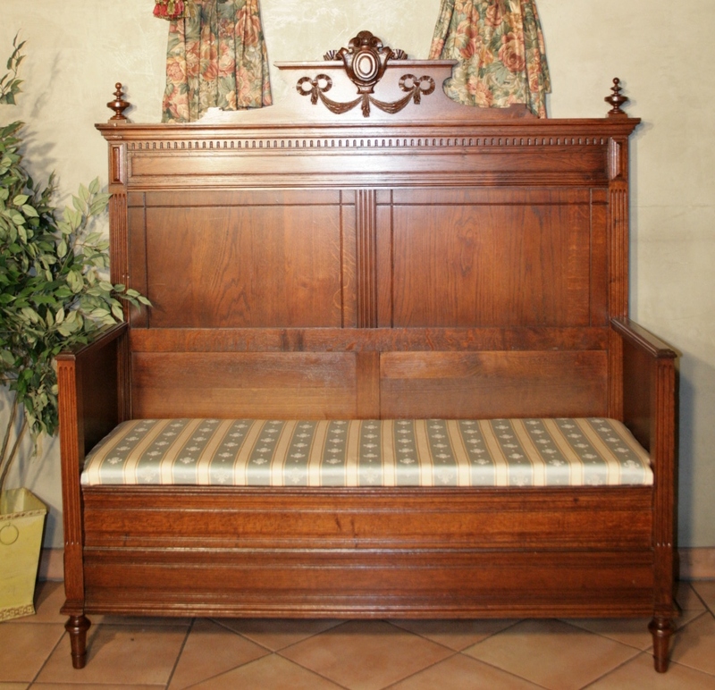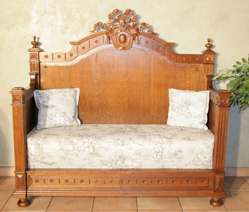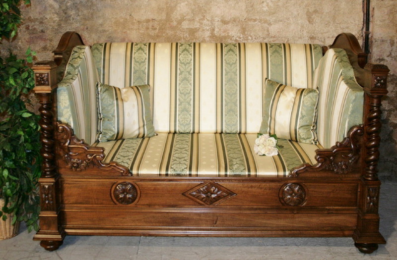 Elegantes kleines Sofa Sitzbank um 1890 in Nussbaum Elegante Sitzbank un 1890 in Nussbaum, mit vier Kissen, komplett neu gepolstert Breite 1,47 m Tiefe 56 cm Höhe 1,47 m Sitzhöhe 50 cm 0.00 € |