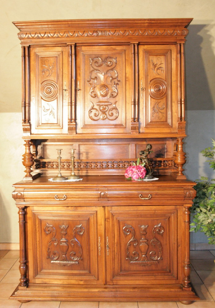 Wunderschönes Büffet in Nussbaum um 1880 Wunderschönes Büffet reich geschnitzt in Nussbaum um 1880 Breite 1,55 m Tiefe 55 cm Höhe 2,45 m 0.00 € |