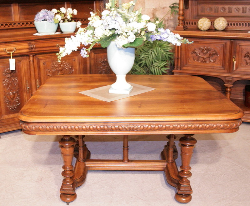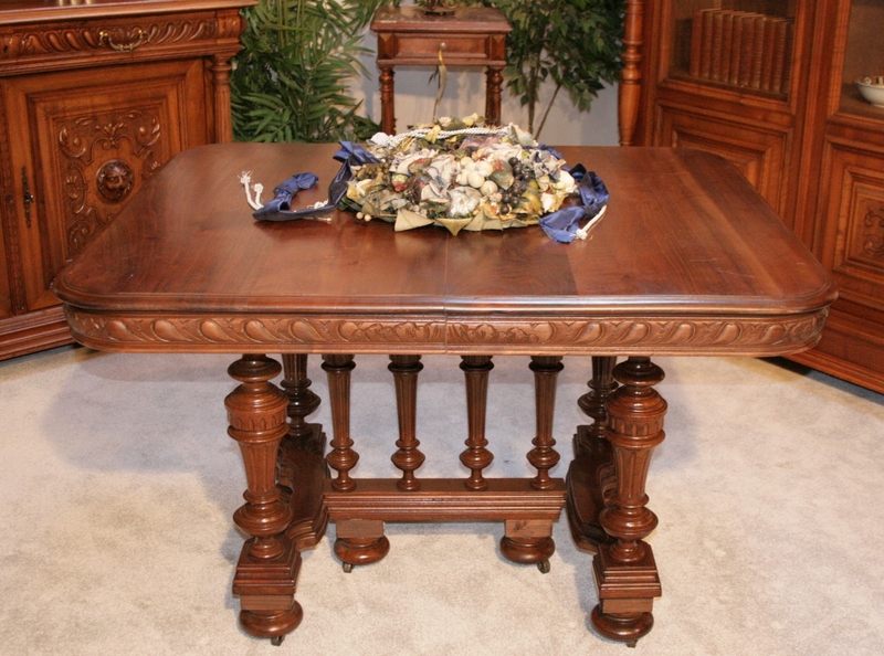 Eleganter Speisetisch in Nussbaum für 14 Pers. um 1880 Eleganter Speisetisch für 14 Personen in edlem Nussbaum um 1880, mit 3 Einlegeplatten.