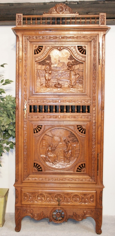 Wunderschöner Bretonischer Schrank in Eiche Wunderschöner Bretonischer Schrank in Eiche um 1880, reich geschnitzt Breite 71 cm Tiefe 44 cm Höhe 1,56 m Gerne mailen wir ihnen Detailfotos zu 0.00 € |