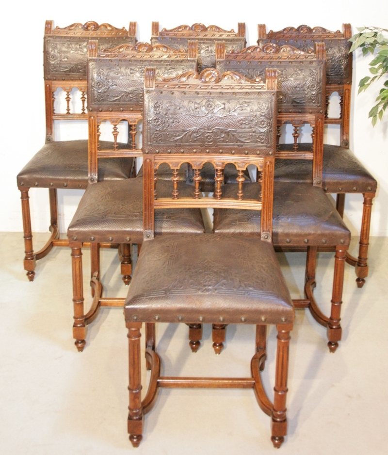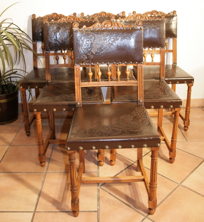6 Elegante Stühle mit Prägeleder um 1880 6 Elegante Stühle mit Prägeleder um 1880 Breite 42 cm Tiefe 39 cm Höhe 93 cm Sitzhöhe 46 cm 0.00 € |