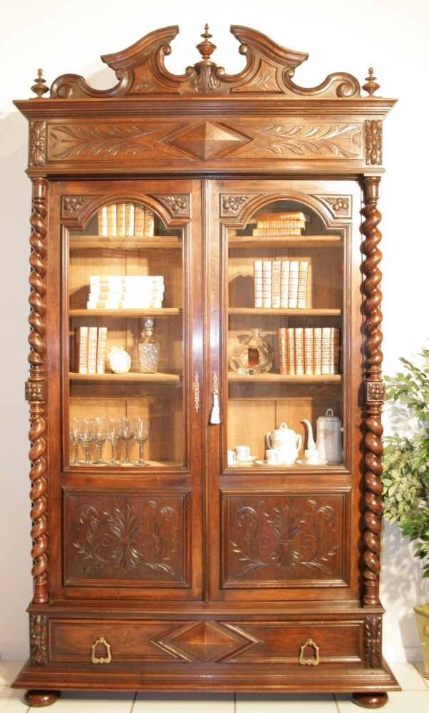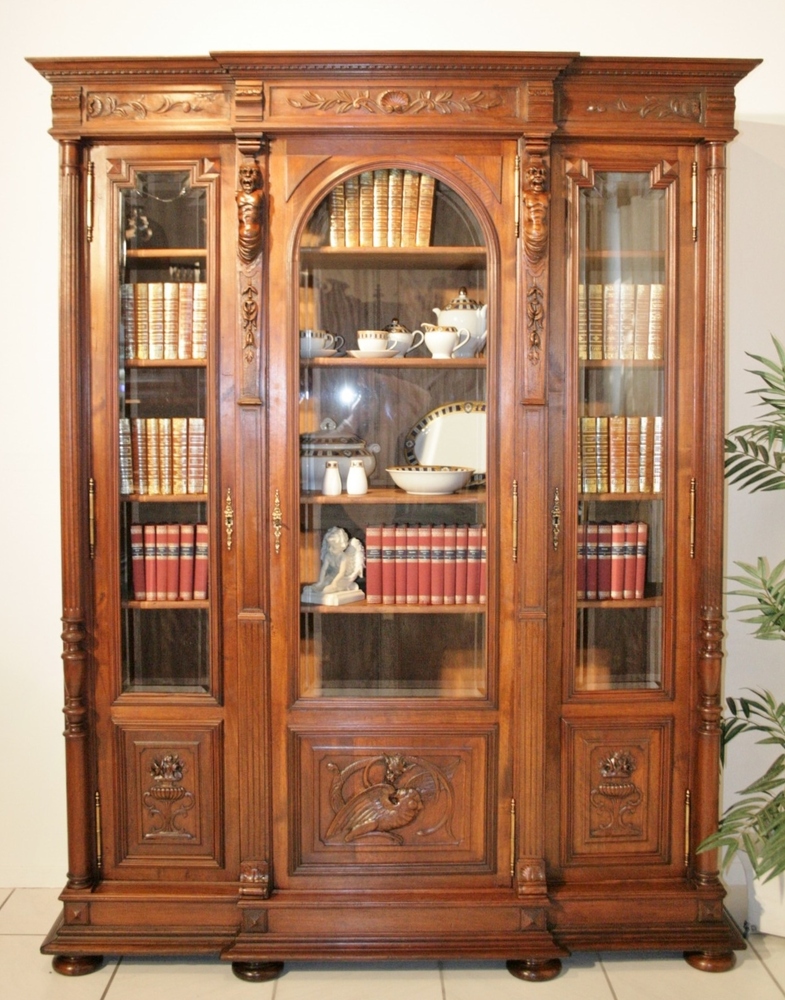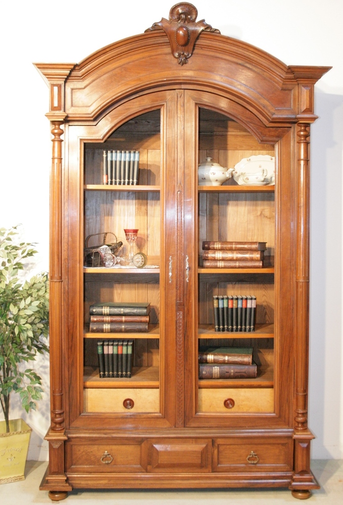 Herrschaftlicher Bücherschrank in Nussbaum um 1870 Herrschaftlicher Bücherschrank in Nussbaum um 1870