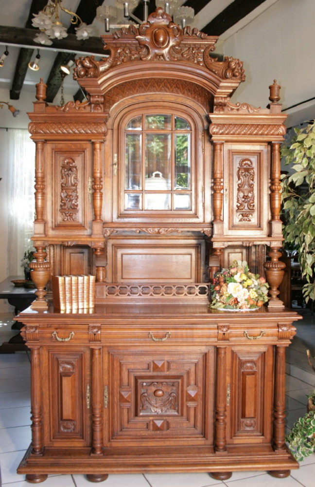 Mit seinen aufwendigen Schnitzarbeiten und der lockeren Bauweise des Oberteile wirkt es sehr harmonisch und nicht mächtig. Somit hat es auch in kleineren Räumen Platz und verliert nicht von seiner Ausstrahlung.