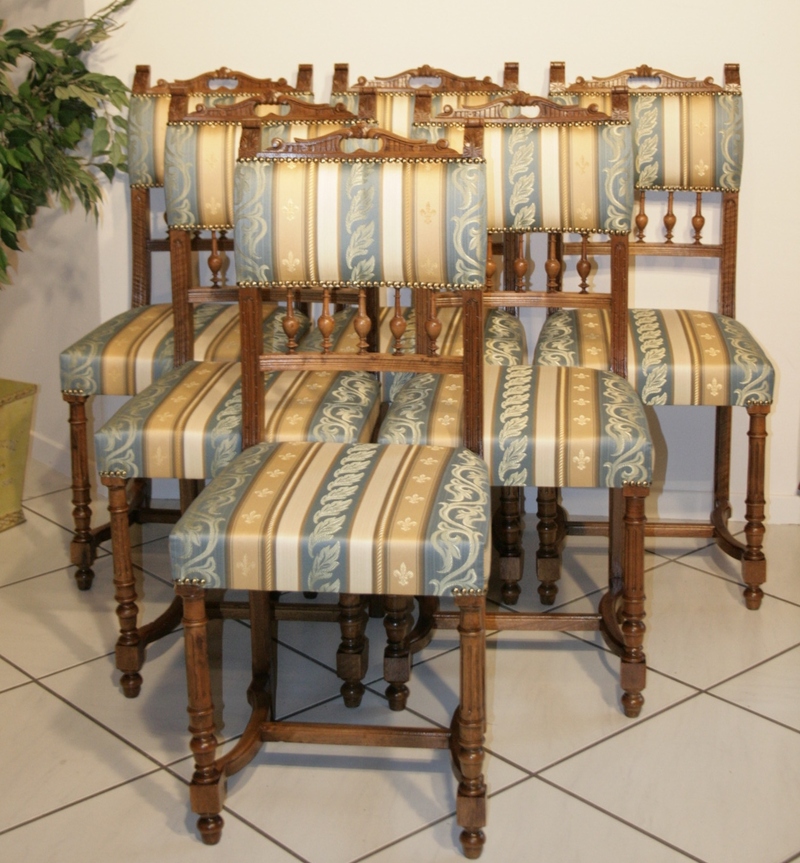 6 Elegante Stühle in Nussbaum um 1880 6 Elegante Stühle in Nussbaum um 1880, komplett neu gepolstert.