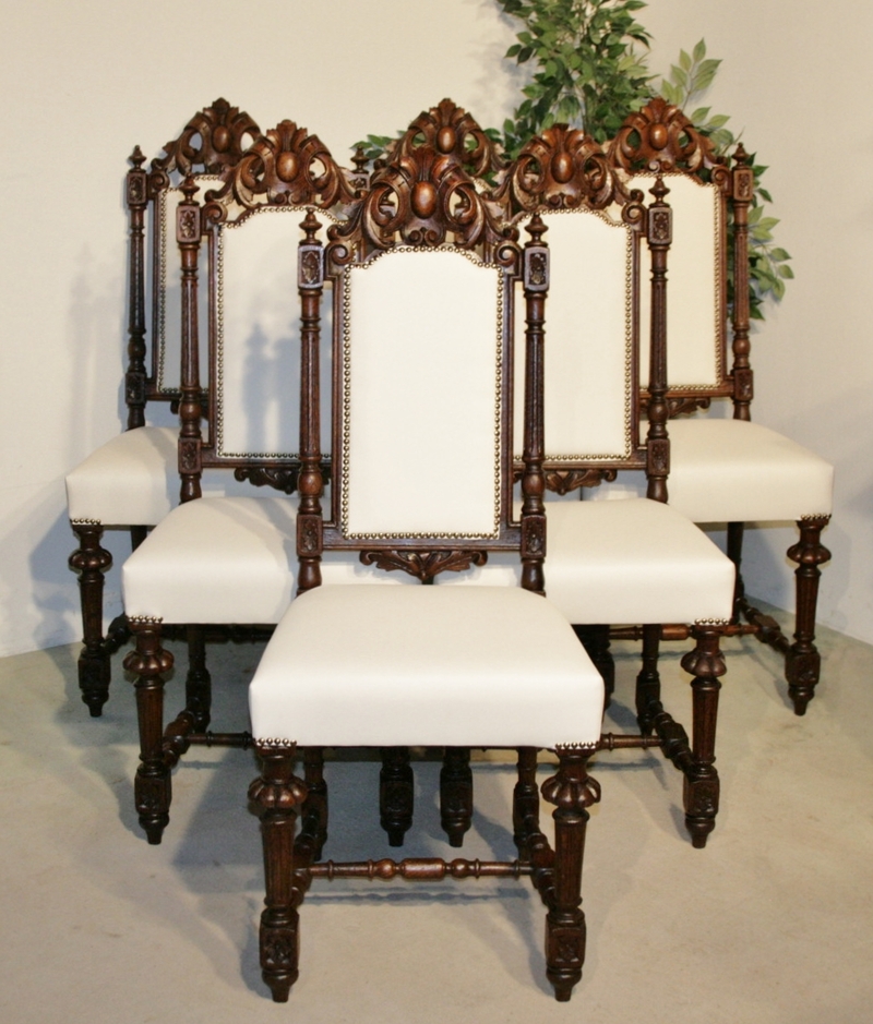 6 Wunderschöne Stühle in Nussbaum komplett neu gepolstert 6 Wunderschöne Stühle in Nussbaum um 1880, komplett neu gepolstert Breite 44 cm Tiefe 41 cm Höhe 94 cm Sitzhöhe 49 cm 0.00 € |