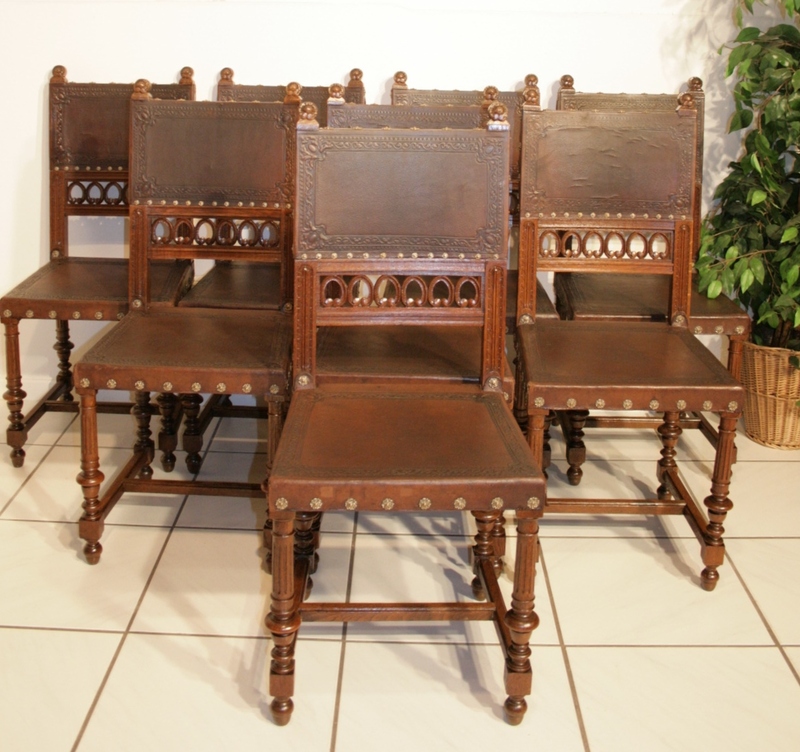 8 Stühle mit original Prägeleder in Nussbaum um 1880 8 Stühle mit original Prägeleder in Nussbaum um 1880 Breite 42 cm Tiefe 40 cm Höhe 98 cm Sitzhöhe 45 cm 0.00 € |