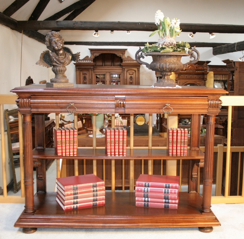 Elegante Anrichte Bücherregal in Nussbaum um 1880 Elegante Anrichte Bücherregal in Nussbaum um 1880 Breite 1,27 m Tiefe 51 cm Höhe 1,76 m 0.00 € |