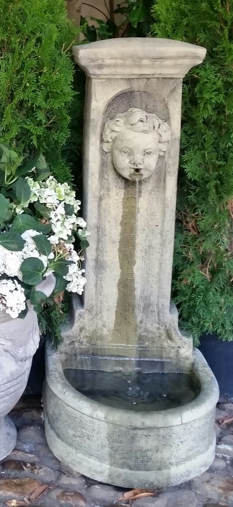 Große Fontaine mit Engel & Löwe Große Fontaine mit Engel & Löwe, der Blickpunkt für ihren Garten, historischer Gartenbrunnen nach originalem Vorbild Breite 1,20 m Tiefe 62 cm Höhe 1,60 m 0.00 € |