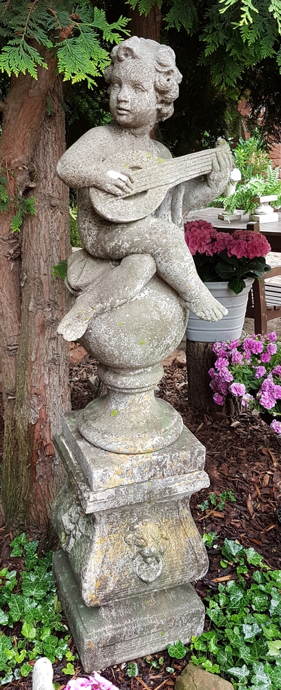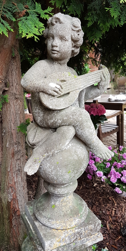 Engel mit Mandoline auf Sockel Engel mit Mandoline auf Sockel, historischer Skulpturen nach originalem Vorbild Breite 42 cm Tiefe 30 cm Höhe 1,00 m Sockel 34 cm Tiefe 34 cm Höhe 52 cm Gesamthöhe 1,52 m 0.00 € |